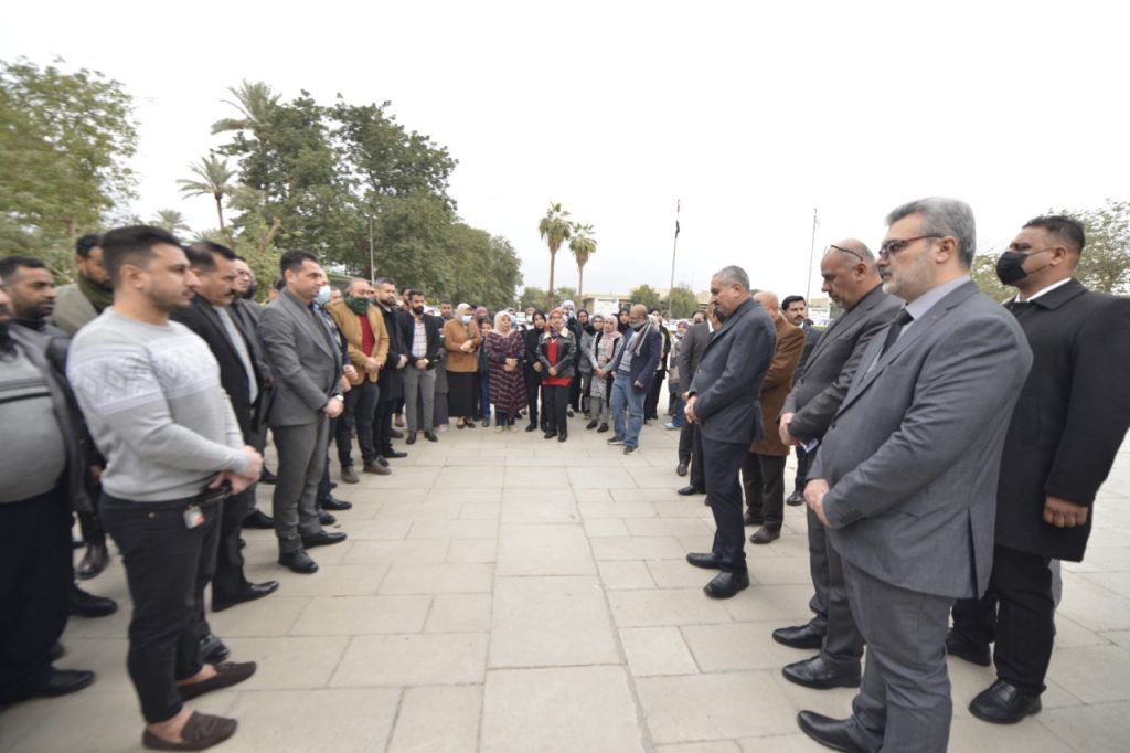 وتضمنت الوقفة قراءة سورة الفاتحة على روح الفقيد، كما شارك فيها عمداء الكليات ورؤساء الاقسام وموظفي رئاسة الجامعة.