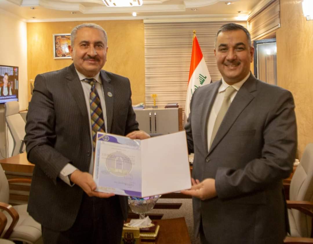زار رئيس جامعة بغداد الاستاذ الدكتور منير حميد السعدي محافظ البنك المركزي العراقي مصطفى غالب مخيف، برفقة مساعده للشؤون الادارية الاستاذ المساعد الدكتور سرمد الانصاري الى جانب عميد المعهد العالي للدراسات المحاسبية والمالية الاستاذ الدكتورة فيحاء عبد الله يعقوب.
