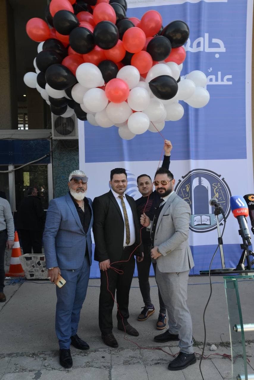 وجرى خلال الاحتفال اطلاق بالونات ملونة وتحليق للطائرات في سماء جامعة بغداد ابتهاجا بالحفل.