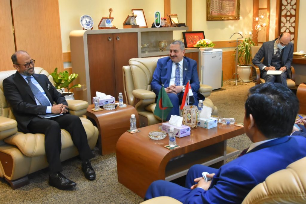 وبحث الطرفان آفاق التعاون العلمي والبحثي بين جامعتي داكا وبغداد من اجل توطيد العلاقات فضلا عن تعزيز التعاون العلمي وتبادل الخبرات بين الجانبين.