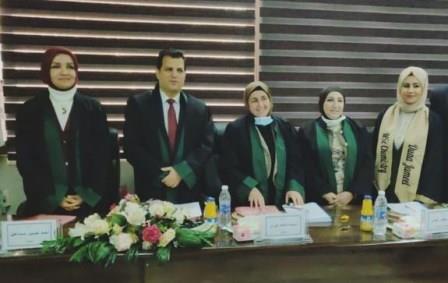 نوقشت في قسم الكيمياء بكلية العلوم جامعة بغداد، مناقشة رسالة الماجستير الموسومة “معقدات الفلزات ثنائية التكافؤ لأزو سلفاميثوكسازول: تحضير وتشخيص مع دراسة بعض تطبيقاتها” للطالبة دعاء جميل جاسم.