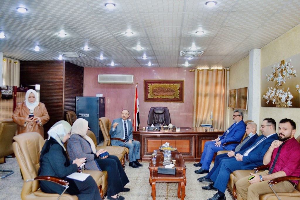 وكان في استقباله عميد الكلية الاستاذ الدكتور فراس عبد الحميد عبد اللطيف و معاوناه للشؤون العلمية و الدراسات العليا ورؤساء الاقسام العلمية و مسؤولة شعبة الدراسات العليا في الكلية .
