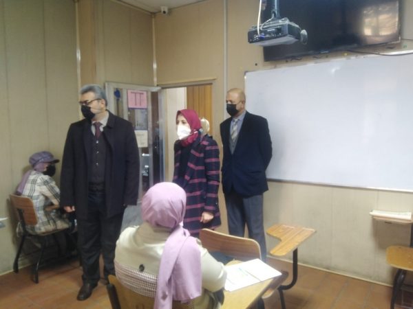 تفقد مساعد رئيس جامعة بغداد للشؤون العلمية الأستاذ الدكتور مروان عبد الحميد عاشور كلية العلوم للبنات للاطلاع على سير امتحانات الفصل الاول للعام الدراسي الحالي برفقة المعاون العلمي للكلية الدكتورة يسرى عبد الصاحب واطلع المساعد العلمي على القاعات واللجان الامتحانية في الاقسام للوقوف على طبيعة الاسئلة وتوزيع خطة جلوس الطالبات وتوفير المستلزمات الضرورية لتأدية الامتحانات فضلا عن توفير الملاك التدريسي من اساتذة الكلية لمراقبة سير الامتحانات بنجاح وأشاد السيد المساعد بالجهود المبذولة من قبل لجان الامتحان بتأدية واجباتها فضلا عن إجراءات الوقاية المتخذة من قبل الكلية وعمادتها للحفاظ على سلامة الطالبات من الجائحة العالمية التي اجتاحت معظم دول العالم.