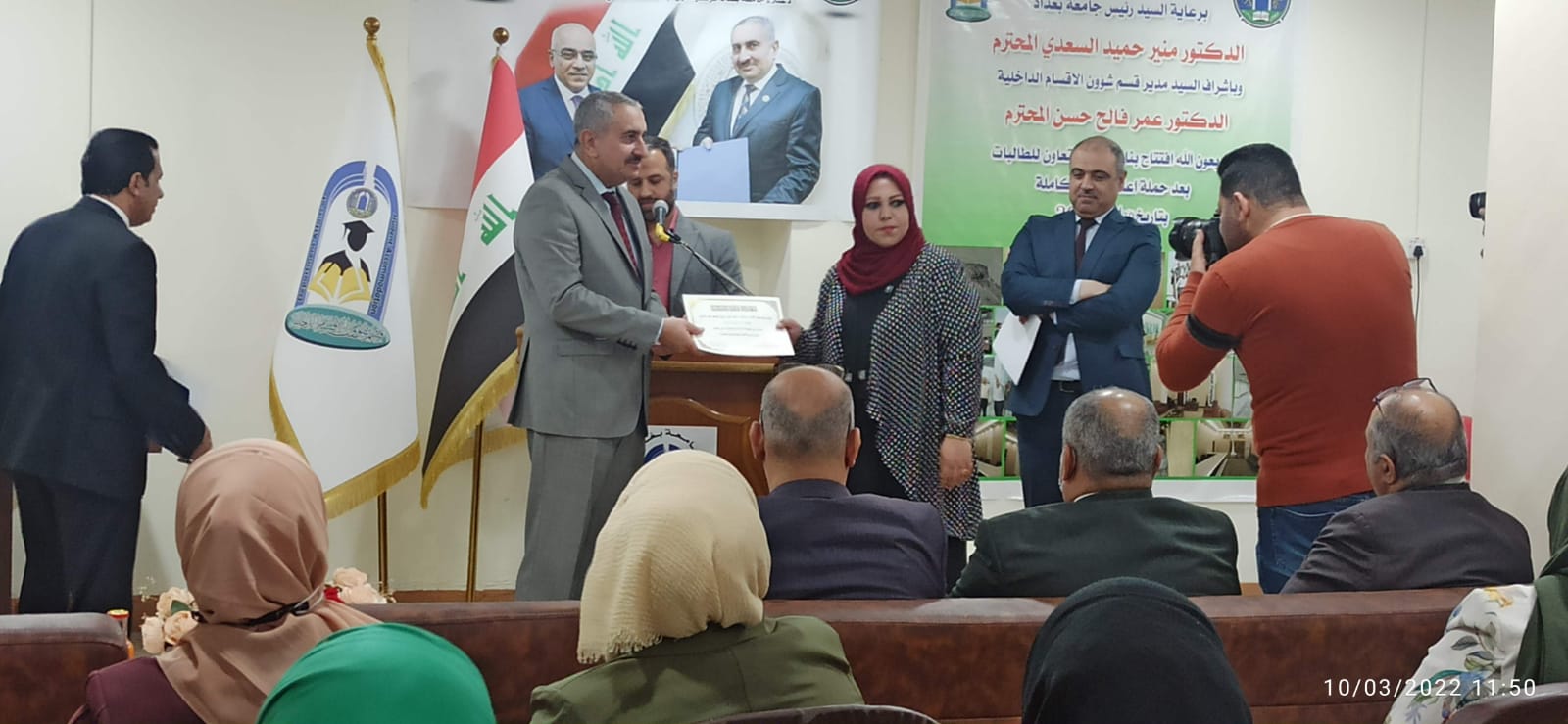 هذا وتم تكريم رئيس الجامعة بدرع التميز من مدير الاقسام الداخلية، فضلا عن تكريم رئيس الجامعة للمهندسين المشرفين على انجاز العمل.
