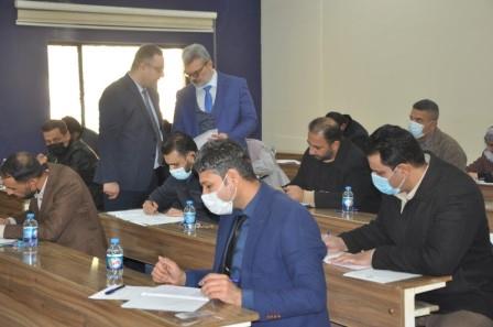 وقدم عميد الكلية الدكتور سهيل نجم عبد الله شرحاً عن الية الامتحانات وتوزيع الطلبة وانسيابية العملية الامتحانية حيث بلغ اعداد الطلبة المشاركين 268طالب وطالبة لاقسام الكلية العلمية .
