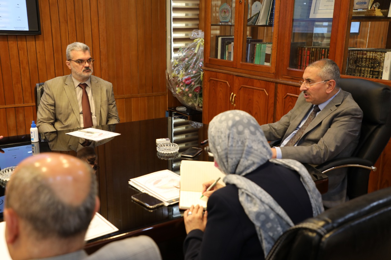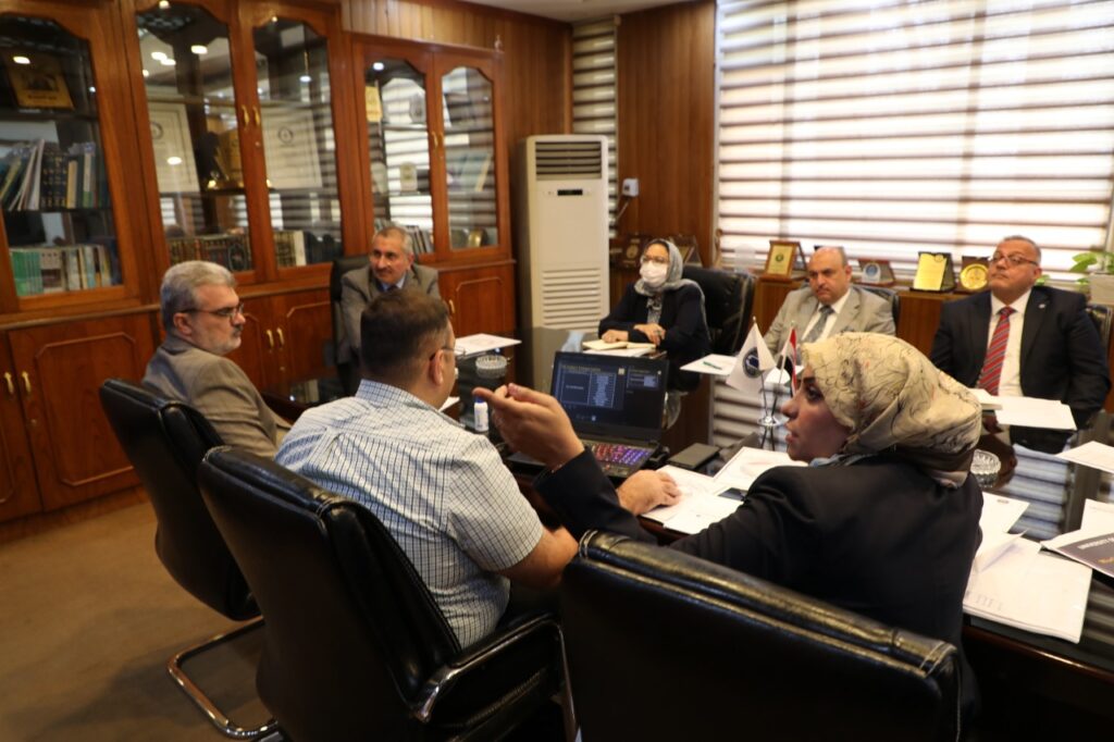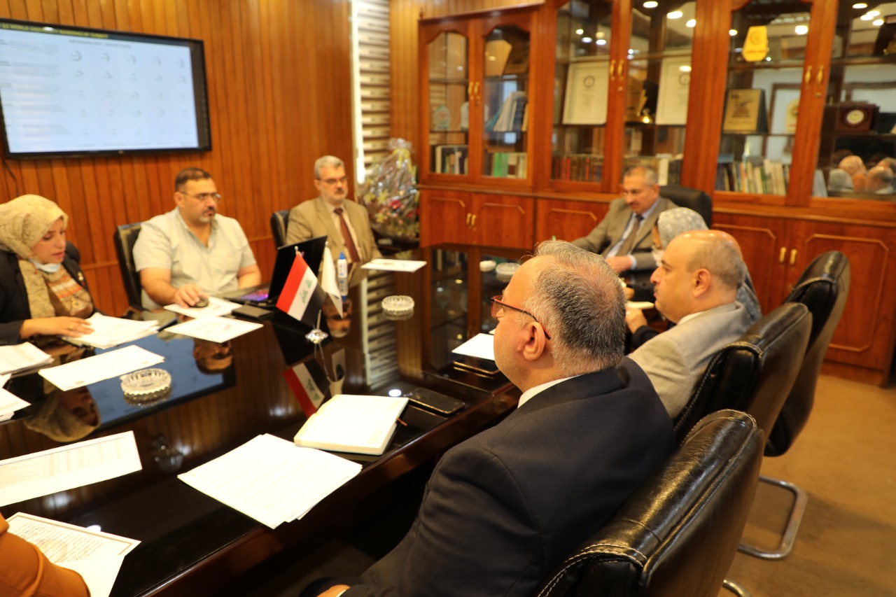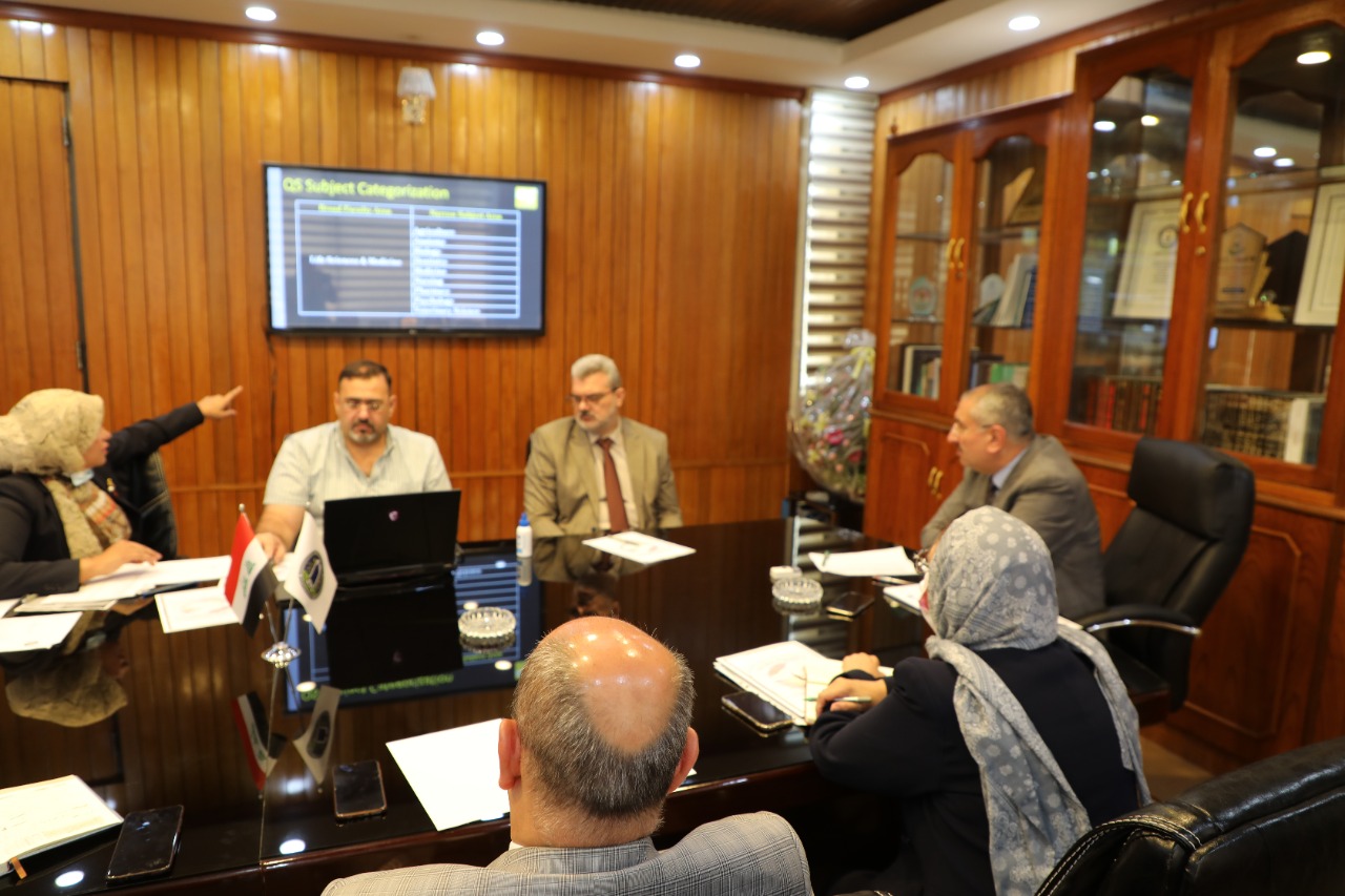 نظم مجلس ضمان الجودة والاعتماد الاكاديمي اجتماعا في رئاسة جامعة بغداد لمناقشة المراتب المتحققة في تصنيفي Qs وScimago بحضور رئيس جامعة بغداد الاستاذ الدكتور منير حميد السعدي ومساعد رئيس الجامعة للشؤون العلمية الاستاذ الدكتور مروان عبد الحميد عاشور وعدد من عمداء الكليات ومدير قسم ضمان الجودة والاداء الجامعي الاستاذ المساعد الدكتورة رنا ثابت عبد .