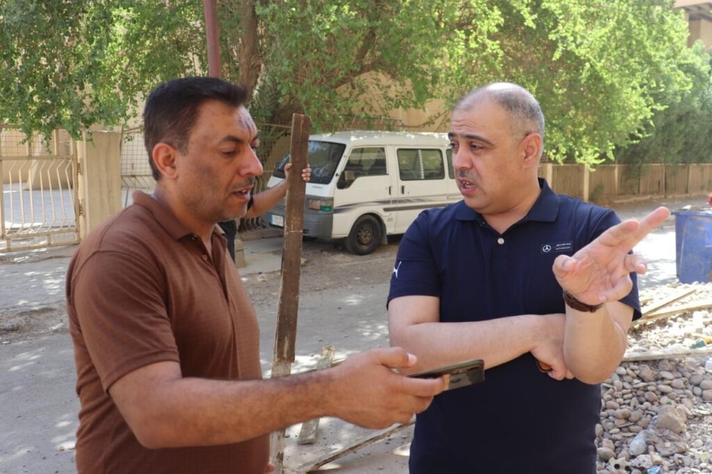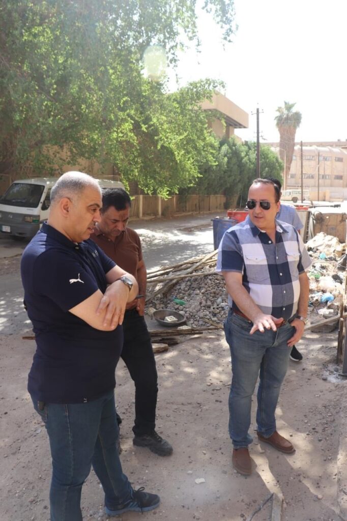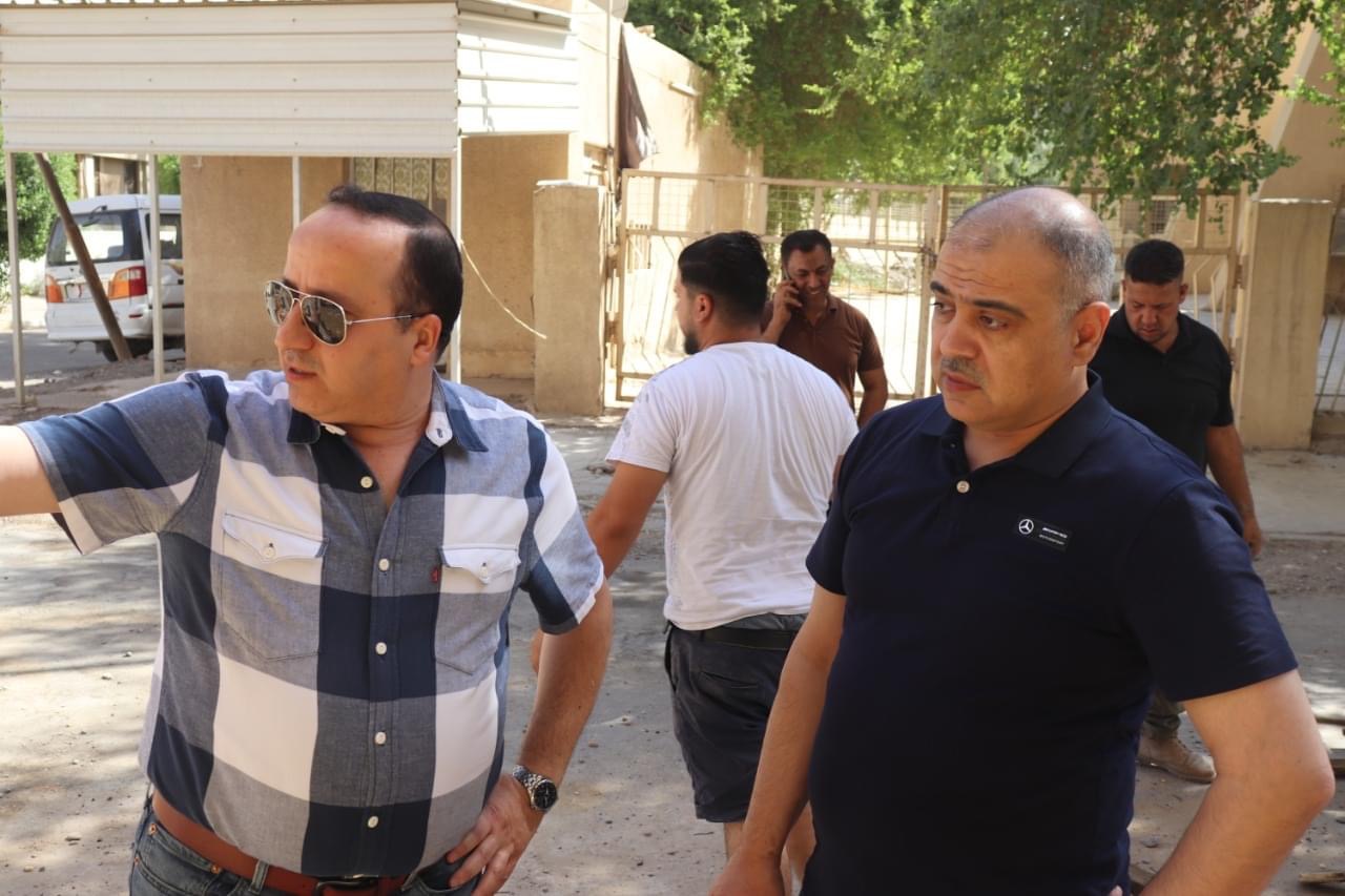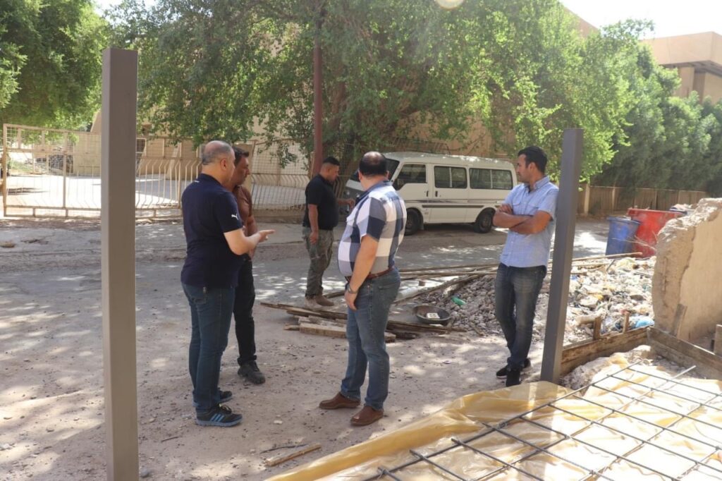 تفقد مدير الاقسام الداخلية في جامعة بغداد الدكتور عمر فالح حسن وبرفقته مدير وحدة الأعمار والمشاريع المهندس فراس اسام عبد الوهاب، اعمال تاهيل ساحات النفايات الخارجية لمجمع النصر .