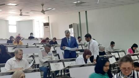 زار مساعد رئيس الجامعة للشؤون العلمية ,الأستاذ الدكتور مروان عاشورالمحترم ،كلية الصيدلة و كان في إستقباله أ.م.د. مناف هاشم معاون العميد للشؤون العلمية ، أطلع على سير الأمتحانات النهائية / الدور الثاني لطلبة الدراسات الأولية و العليا متفقدا طبيعة الأسئلة و مدى توفير بيئة مناسبة لسير الأمتحانات، و قد أشاد بالجهود و الأجراءات المتبعة لتنظيم أمتحانات بهذه الأنسيابية العالية ،متمنيا التوفيق و النجاح لطلبتنا الأعزاء.