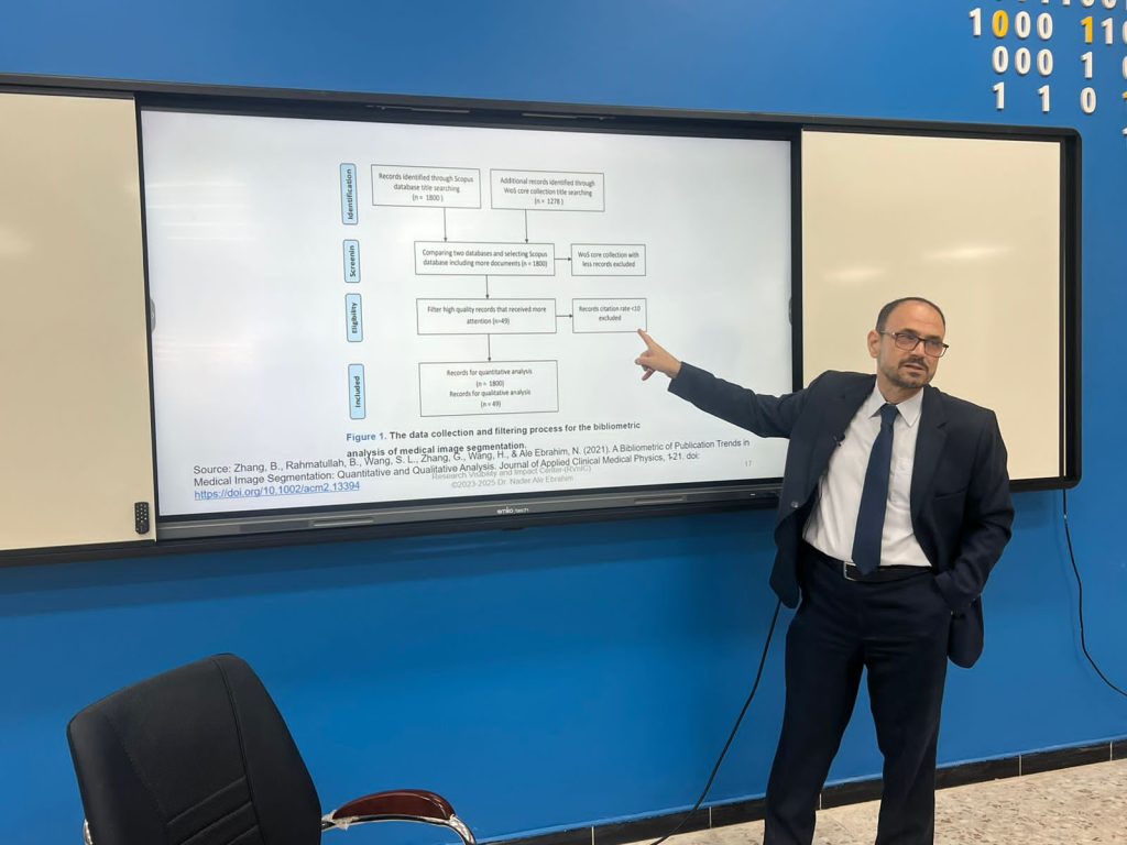 برعاية وزير التعليم العالي والبحث العلمي الدكتور نعيم العبودي ، وإشراف رئيس جامعة بغداد الاستاذ الدكتور منير حميد السعدي نظمت جامعة بغداد ورشة عمل حول كيفية كتابة البحوث العلمية ،القها البرفسور من جمهورية ايران الاسلامية نادر آل براهيم،بحضور كوكبة من تدريسي وطلبة الجامعة.