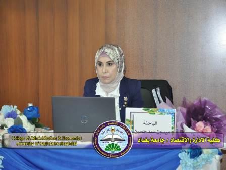 شهدت كلية الادارة والاقتصاد في جامعة بغداد مناقشة رسالة الماجستير الموسومة (التقديرات اللامعلمية الحصينة للسلاسل الزمنية غيرالمستقرة مع التطبيق) في تخصص الاحصاء للطالبة (ميسون عبد حسين)