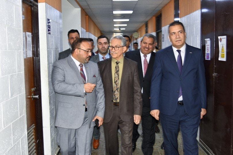تفقد مستشار وزارة التعليم العالي والبحث العلمي الدكتور علاء عبد الحسين سير الامتحانات النهائية في كلية الهندسة بجامعة بغداد ، برفقة كل من الدكتور امير فيصل عبد الامير مساعد رئيس الجامعة للشؤون الادارية وعميد كلية الهندسة بجامعة بغداد الاستاذ الدكتور غسان حميد عبد المجيد .