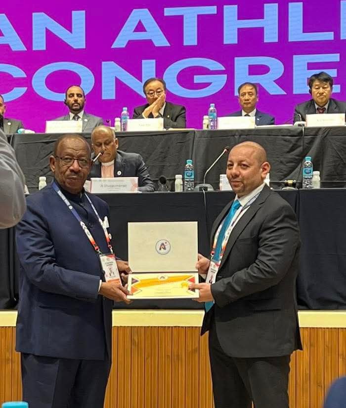 كرم التدريسي في كلية التربية البدنية و علوم الرياضة بجامعة بغداد الدكتور زيدون جواد محمد بوسام القيادة الرياضية من قبل الاتحاد الآسيوي لألعاب القوى لعام 2025 في حدث رياضي مميز، تقديرًا للجهود المتميزة والإسهام في تطوير رياضة ألعاب القوى على مستوى آسيا طوال 12 عامًا.